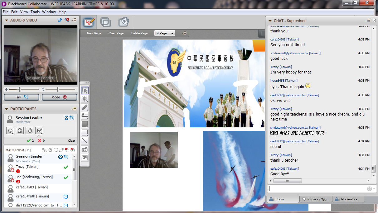 Wed Dec 11 0800 GMT Delin and her students at Taiwan Air Force Academy in BbC / Elluminate