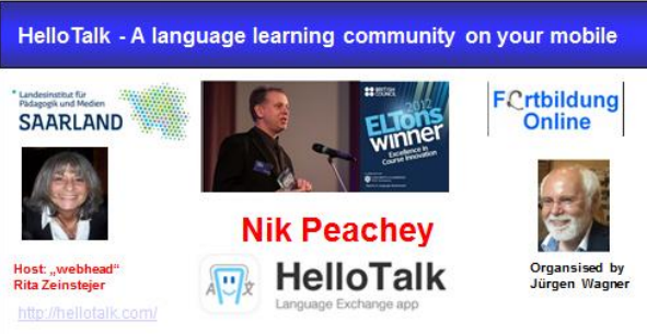 Mon Dec 15 and Thu Dec 18 – Juergen Wagner hosts two events with Webheads Rita Zeinstejer (Thinglink) and Nik Peachey (HelloTalk)