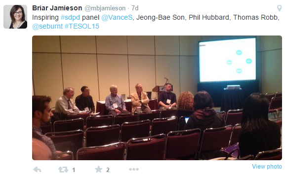 Links associated with my part of this presentation can be found here http://tinyurl.com/tesol2015vance-mooc - Friday, March 27, 2015 at 4:00 PM in room 703 at the Metro Toronto Convention Centre, Jeong-Bae Son, Phil Hubbard, Tom Robb, Tyson Seburn, and Vance Stevens convened a panel on “Self-directed professional development in computer-assisted language learning”;