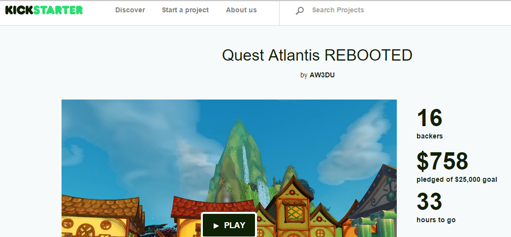 For the past decade there was a vast educational research project taking place in classrooms on 6 continents. It was Quest Atlantis, a massively multiplayer online game integrating strong support for 21st century skills into each subject. Teachers, students, and researchers alike hoped that Quest Atlantis could grow, and other students could share the experiences they loved. Some parts of the project moved forward, but as grant funding for the multiplayer platform drew to a close, the team couldn’t keep the game ready for today’s classrooms. As the developers of the engine that ran Quest Atlantis, we’ve always been excited to see what students were able to do, inside the game and out, and we listened when teachers told us they didn’t want to see it go. We’re working hard to bring it back for a new generation, in collaboration with members of the original Quest Atlantis team. If you brought your students in to Quest Atlantis – or if you were a student there – you know that the community formed around reading, writing, building, sharing, and saving the world together was special. You know there was potential for much more to unfold – more for students and teachers to create, more features to make the right tools available. Make your pledge and help us bring a new Quest Atlantis to a new generation!