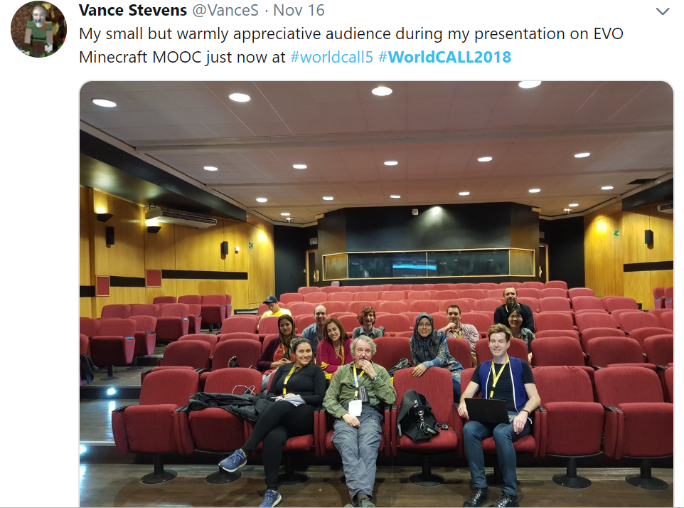 2018-12-14_2037audience December 14, 2018 at 962 × 714 in Vance Stevens presents ‘Gamifying Teacher Professional Development through Minecraft MOOC’ at WorldCALL 2018 ← Previous Next →