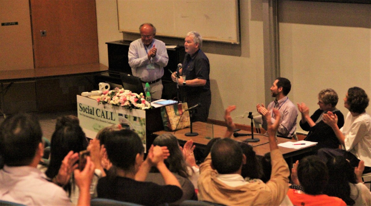 IMG_3807jozef_phil_clapping August 1, 2019 at 3401 × 1896 in Vance Stevens receives the Lifetime Achievement Award for 2019 at the CALL Research Conference in Hong Kong ← Previous Next →