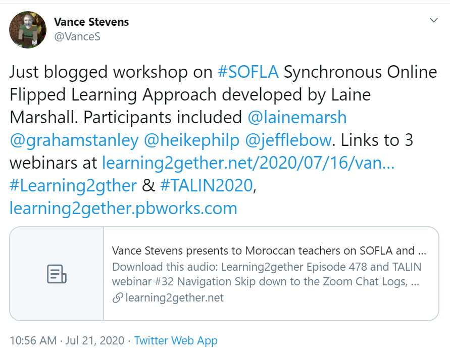 2020-07-21_tweet July 21, 2020 at 891 × 697 in SOFLA advanced and critiqued at the 17th Webheads Revival Weekly Sunday Sandbox OpenMic-inar ← Previous