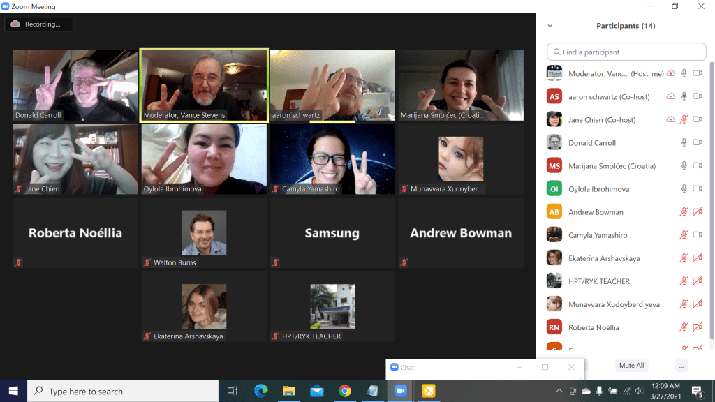 On Saturday, March 27, 3:00 – 4:00 am EDT (= 7:00 – 8:00 UTC) I helped facilitate