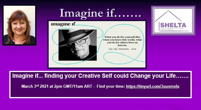 Wed 3 March 1400 UTC Susan Hillyard free on-line workshop commemorating Sir Ken Robinson