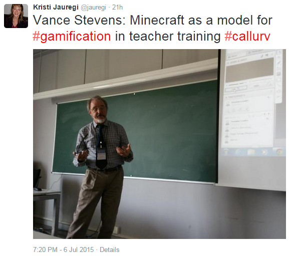 On Monday 6 July there was a Learning2gether session with Vance Stevens giving a presentation at the XVII CALL Research Conference about Minecraft as a model for gamification in teacher professional development